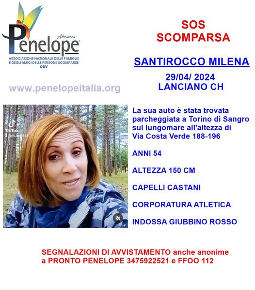 Ancora senza esito le ricerche di Milena Santirocco, l’insegnante di danza di cui non si hanno più notizie da domenica scorsa. Numerose le segnalazioni da Vasto.