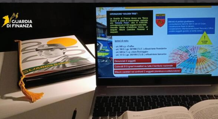Sarebbero circa 500 le persone tra i 20 e gli 85 anni danneggiate sul territorio nazionale attraverso il cosiddetto “schema Ponzi”, un sistema truffaldino che promette guadagni da investimenti, ma che invece si alimenta con soldi di altre persone e si blocca quando le richieste di rimborsi superano le somme raccolte.