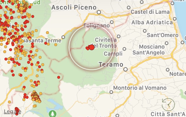 Scossa di terremoto a Valle Castellana 3.7 stasera alle 22.21