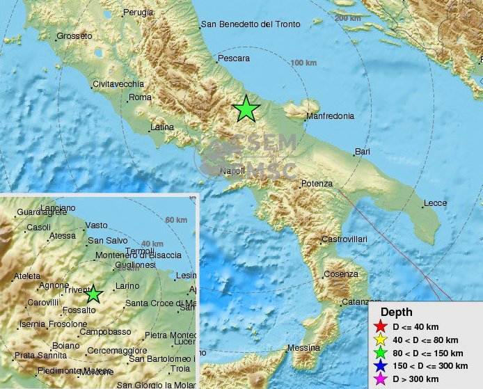 Avvertita anche in Abruzzo una forte scossa di terremoto 4.2 nell’entroterra del Molise. Altra scossa a Pietracamela (Te).
