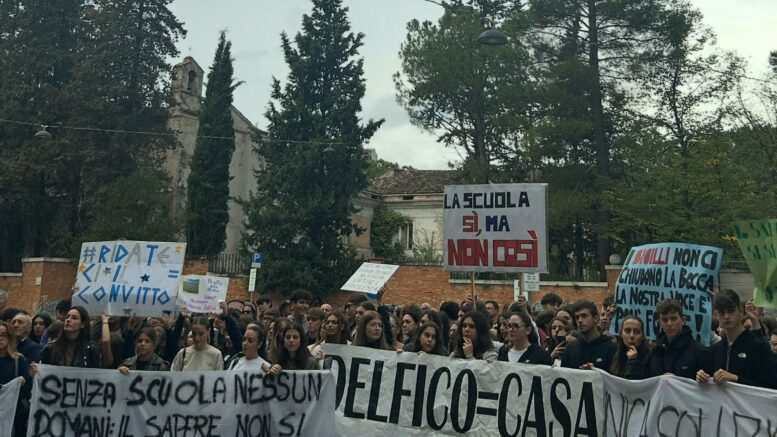 “Le soluzioni finora presentate non vengono per niente incontro a noi studenti: dalla proposta di lezioni pomeridiane da 35 minuti dalle 15 alle 18 con orari di entrata diversi per indirizzo, alla proposta di spostare noi alunni in molteplici sedi con gli stessi problemi del Delfico non possono trovarci d’accordo e frammenterebbero il corpo studentesco dell’Istituto oltre che creare grossi disagi con i trasporti.” spiega Calzolaio “Proprio per questo, il 7 ottobre abbiamo manifestato per denunciare questa situazione e lo rifaremo il 15 novembre durante lo sciopero studentesco nazionale. Continueremo a chiedere a gran voce investimenti nell’edilizia per tutelare il nostro diritto allo studio e ci mobiliteremo finché non otterremo garanzie.”