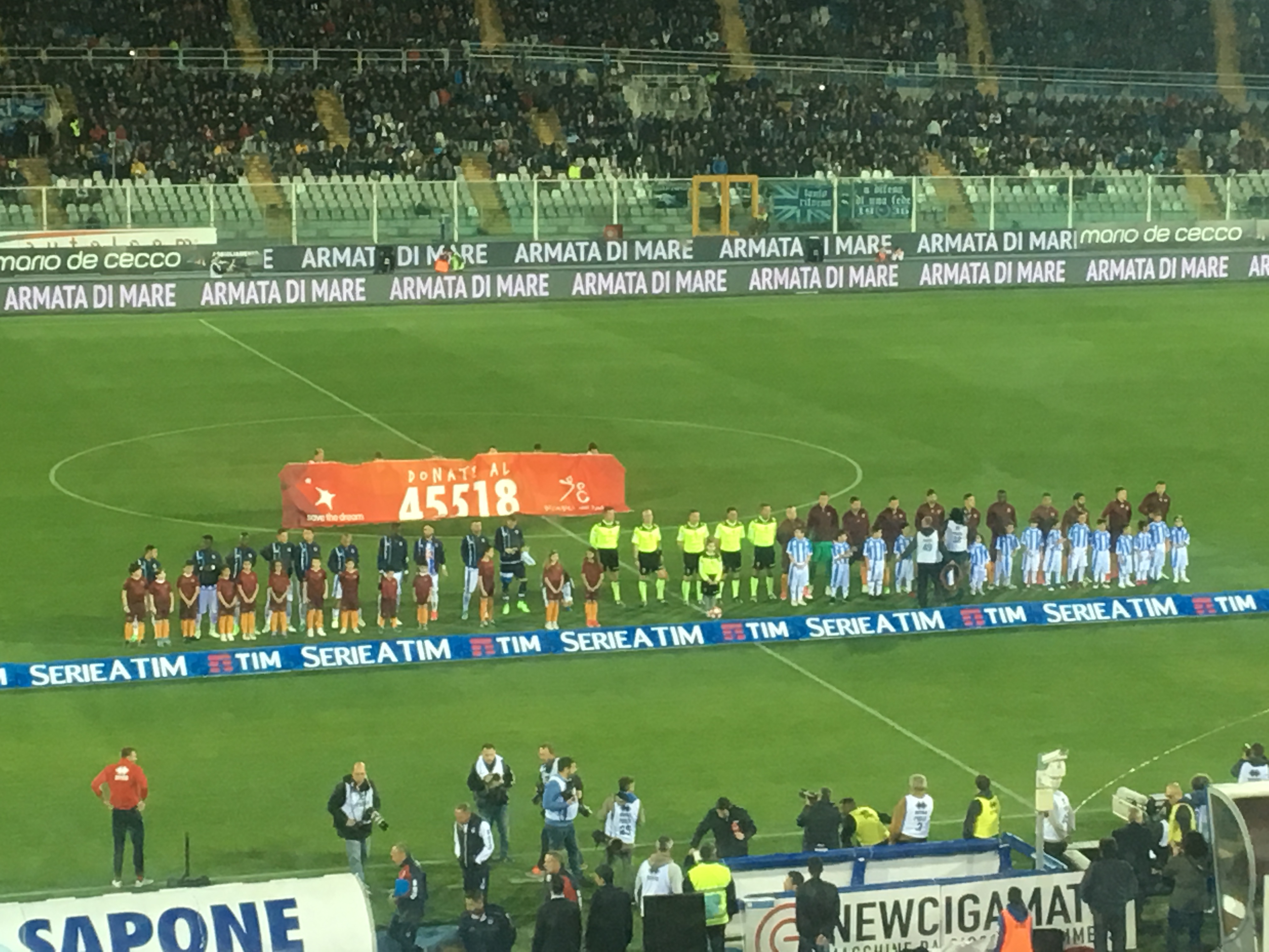 Serie A Pescara Roma – Giallorossi inarrestabili all’Adriatico. Per gli abruzzesi arriva la retrocessione in B. 4-1 il finale per Salah e compagni oggi senza Totti ( non convocato)e De Rossi ( in panchina)
