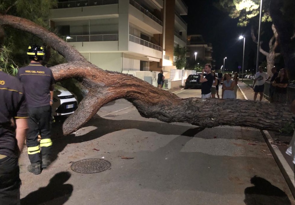 Sfiorata la tragedia la scorsa notte a Roseto degli Abruzzi. Un albero di 15 metri è caduto schiacciando tre automobili