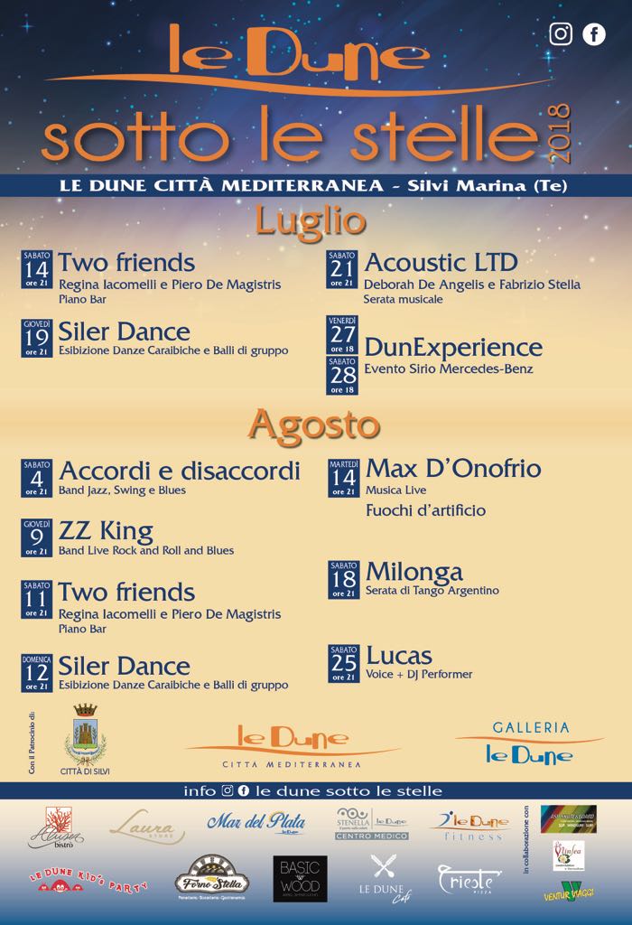 Ancora un appuntamento nel calendario delle serate di intrattenimento, cultura e spettacolo “Le Dune sotto le stelle” a Silvi. Alle 21 il concerto di Acoustic Ltd, il progetto musicale acustico ideato da Fabrizio Stella e Debora De Angelis che porta sul palco cover acustiche di famosi brani nazionali ed internazionali.