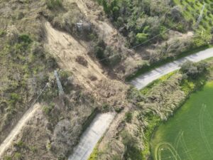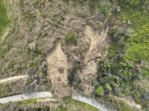 Il fronte franoso è di circa 30 metri, per 80 di altezza e si sono riversati in strada almeno 1500 metri cubi di terreno. Il fronte franato è piuttosto ampio, sembra che il terreno si sia abbassato per circa un metro, probabilmente a causa dell’acqua piovana accumulata nei recenti giorni di maltempo.