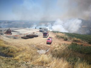 Lo schieramento degli uomini dei vigili del fuoco ha impedito che le fiamme potessero raggiungere le abitazioni. Al momento le squadre stanno operando per bloccare il fronte di fiamma in modo da impedire che possa mettere a rischio il canile e il campo di pannelli fotovoltaici.