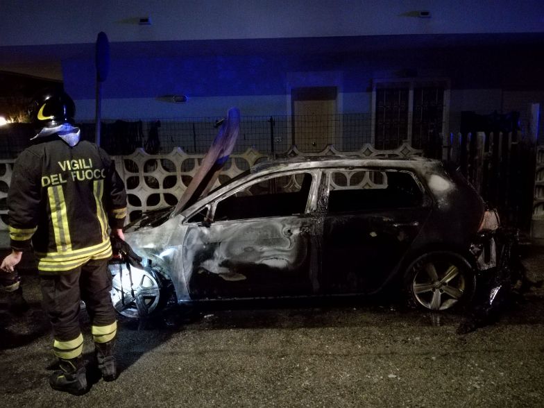 A Silvi incendio di una Golf parcheggiata in strada la notte scorsa. Sul posto i Vigili del Fuoco.
