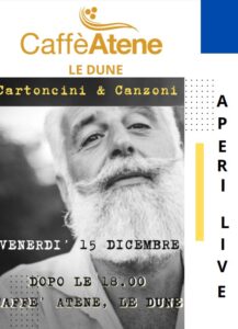 Continuano gli aperitivi in musica del Caffè Atene presso “Le Dune” a Silvi. Musica live, drink, buon cibo e tanta atmosfera natalizia per un pomeriggio di festa: l’appuntamento è allietato dal cantautore Loris Dalì.