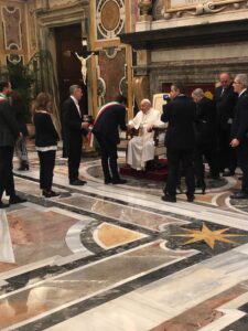 “Ogni momento di incontro con Papa Francesco, il Papa che sempre più ci richiama al rispetto dei diritti e della pace – sottolinea il sindaco Gianguido D’Alberto – è per noi fonte di grande commozione. Nelle sue parole, oggi come in passato, ritroviamo il senso del nostro essere sindaci, che è quello della tutela dei più fragili, della promozione del senso di giustizia, dell’agire mettendo sempre al centro l’uomo come persona”.