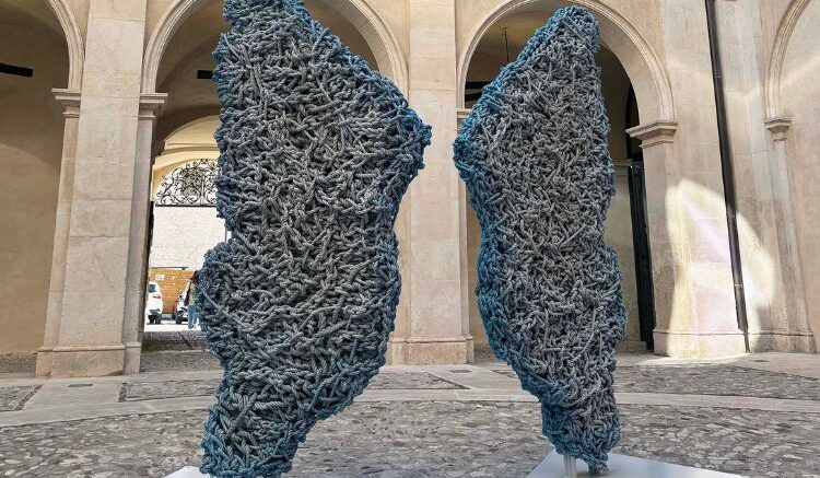 “La cultura rappresenta la forza propulsiva del percorso di rigenerazione sociale e fisica che sta compiendo la nostra città – hanno dichiarato il sindaco dell’Aquila, Pierluigi Biondi, unitamente all’assessore al Patrimonio, Vito Colonna -. L’arte può costituire un valore aggiunto per il processo di ricostruzione arricchito dal contributo di menti creative che innescano interazioni con il territorio, valorizzandone i molteplici aspetti e le diverse risorse che esso è in grado di esprimere. Per questo abbiamo accolto con entusiasmo l’idea di arricchire gli spazi di palazzo Margherita con l’opera dell’artista, emblema e augurio di forza e rinnovamento”. Le ali simboleggiano il futuro e il passato rappresentato dal filo del bozzolo che rimane scolpito nella metamorfosi, nella nuova forma di farfalla. I nodi richiamano, invece, i legami emotivi e fisici che, insieme, costituiscono l’energia universale. Dei colori predominanti della scultura, l’azzurro è la purezza di una nuova nascita, il cielo, quel cielo che si guarda per essere più vicini ai propri cari che non ci sono più, mentre il grigio è dato dalle rocce dell’Aquila, icone di forza e adattamento.