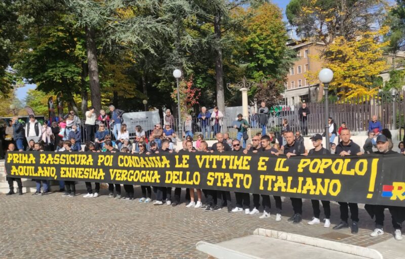 Hanno formalmente aderito comitati sorti nel Paese all’indomani di altre catastrofi, quella del ponte Morandi a Genova, di Rigopiano o quella relativa all’inquinamento di Taranto. Hanno aderito anche esponenti politici abruzzesi, sindacati, associazioni, gruppi organizzati tra cui i tifosi dell’Aquila Calcio. “Prima rassicura poi condanna le vittime e il popolo aquilano, ennesima vergogna dello Stato italiano”, recita uno striscione dei Red Blue Eagles, mentre un altro con scritto “Le vittime non hanno colpa” ha affiancato il palco da cui sono partiti gli interventi. Il primo a prendere la parola è stato Federico Vittorini che nel sisma ha perso madre e sorella. “Una sentenza che crea un precedente pericoloso – ha detto – giudici del genere non devono continuare a esercitare, mi prendo la responsabilità di quello che dico. Perché una sentenza del genere attribuirebbe la colpa persino a Falcone e Borsellino per il fatto di aver combattuto la Mafia. Chi c….. gliel’ha fatto fare di combattere la mafia?”. Il padre, Vincenzo Vittorini, volto simbolo per 13 anni della battaglia per il riconoscimento dei diritti delle vittime, ha ripercorso la storia dei mesi prima e dopo il sisma, anche in relazione alla riunione della Commissione Grandi Rischi. “Condannare le vittime con il 30% di colpa è un abominio laddove qui in Italia e in altre stragi italiane non è stata fatta né verità né giustizia”.