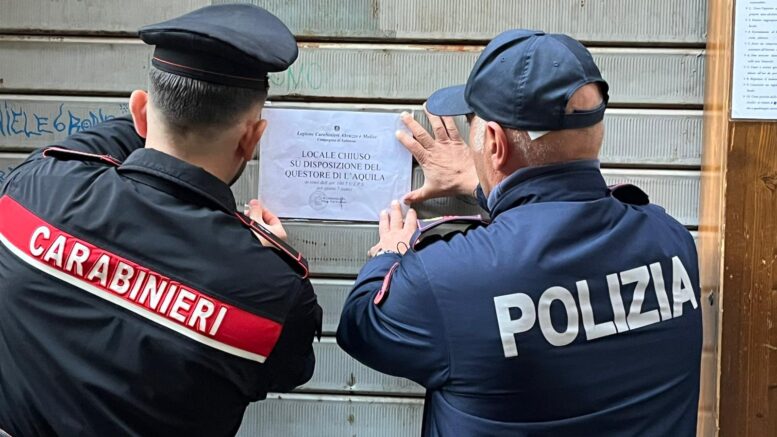 La Polizia di Stato di L’Aquila, su proposta del Comandante della Compagnia dei Carabinieri di Sulmona, ha adottato nei confronti del locale l’articolo 100 del Testo Unico delle Leggi di Pubblica Sicurezza, che prevede la sospensione temporanea della licenza in caso di accertate violazioni.