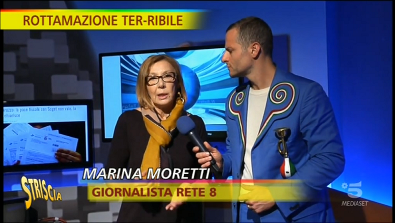 Qualche giorno fa la troupe di Striscia, capitanata da Riccardo Trombetta, è approdata negli studi di Rete8, a Chieti, dove ha sentito Marina Moretti, poi ha raggiunto il commercialista Luca Del Federico, a Pescara. Il servizio del giustiziere televisivo è andato in onda nella puntata di ieri sera ed è visibile al seguente link: