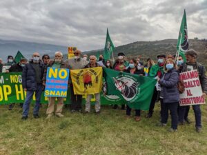 Sit-in contro la Centrale Snam e il gasdotto Sulmona-Foligno in località Case Pente a Sulmona. All’iniziativa ha preso parte anche una delegazione del Consiglio Nazionale Indigeno Messicano – CNI che sta effettuando un viaggio di conoscenza e amicizia in Europa e che, per l’occasione, ha deciso di far tappa anche in Valle Peligna.