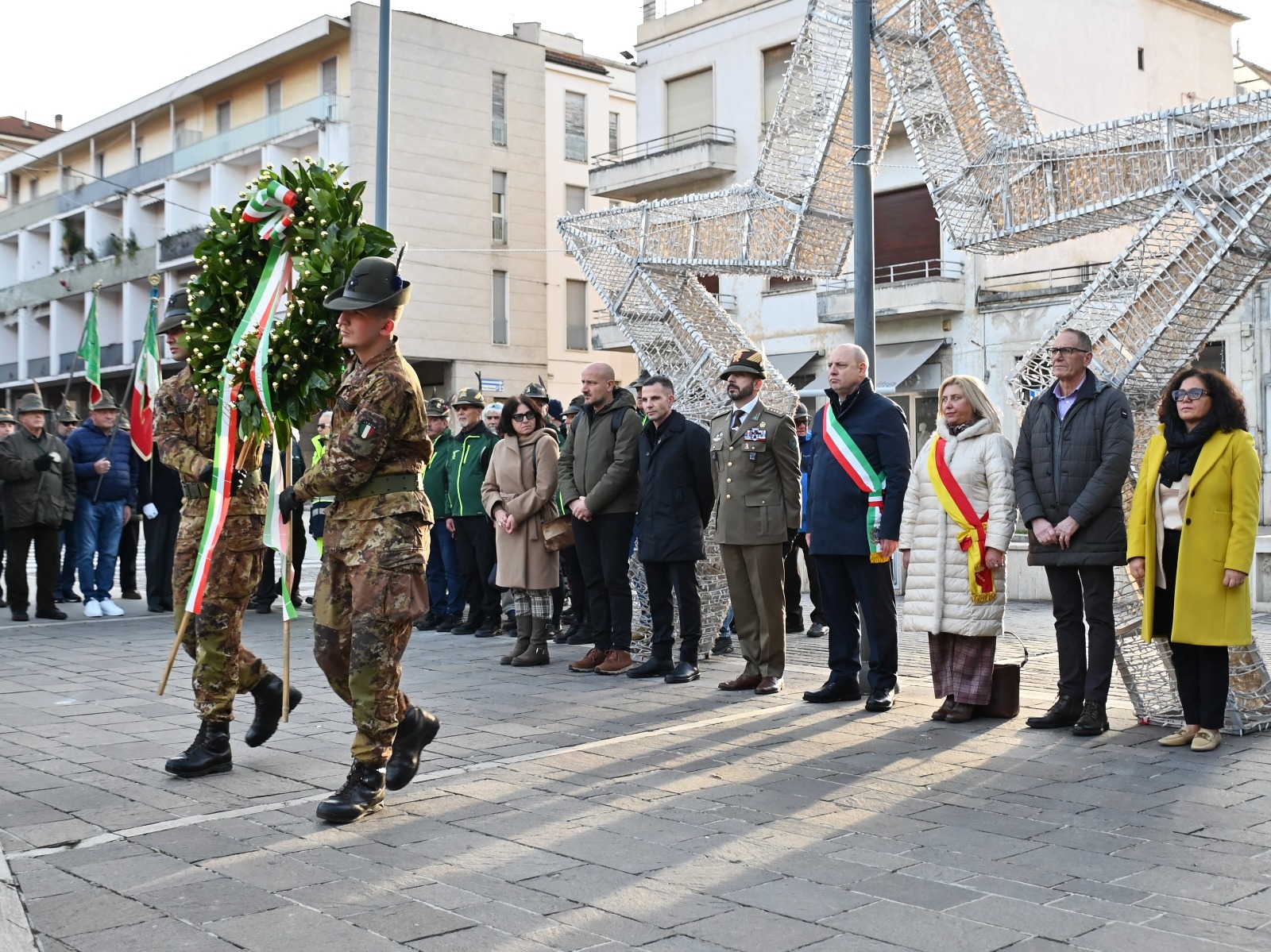 La cerimonia si è aperta nel pomeriggio con la deposizione di una corona di alloro al monumento ai Caduti in Piazza Carlo Tresca, in un momento di raccoglimento e memoria condivisa. A seguire, la Fanfara della Brigata Alpina “Taurinense” ha sfilato per le vie del centro, accompagnando cittadini e visitatori fino al Teatro Comunale “Maria Caniglia” con le sue note solenni e coinvolgenti.