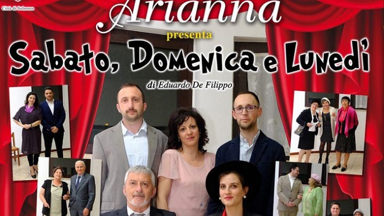 La compagnia teatrale Arianna presenta “Sabato, domenica e lunedì”, stasera al teatro Caniglia a Sulmona. L’intero ricavato sarà destinato ad attività integrative per il centro autismo di Pratola Peligna.