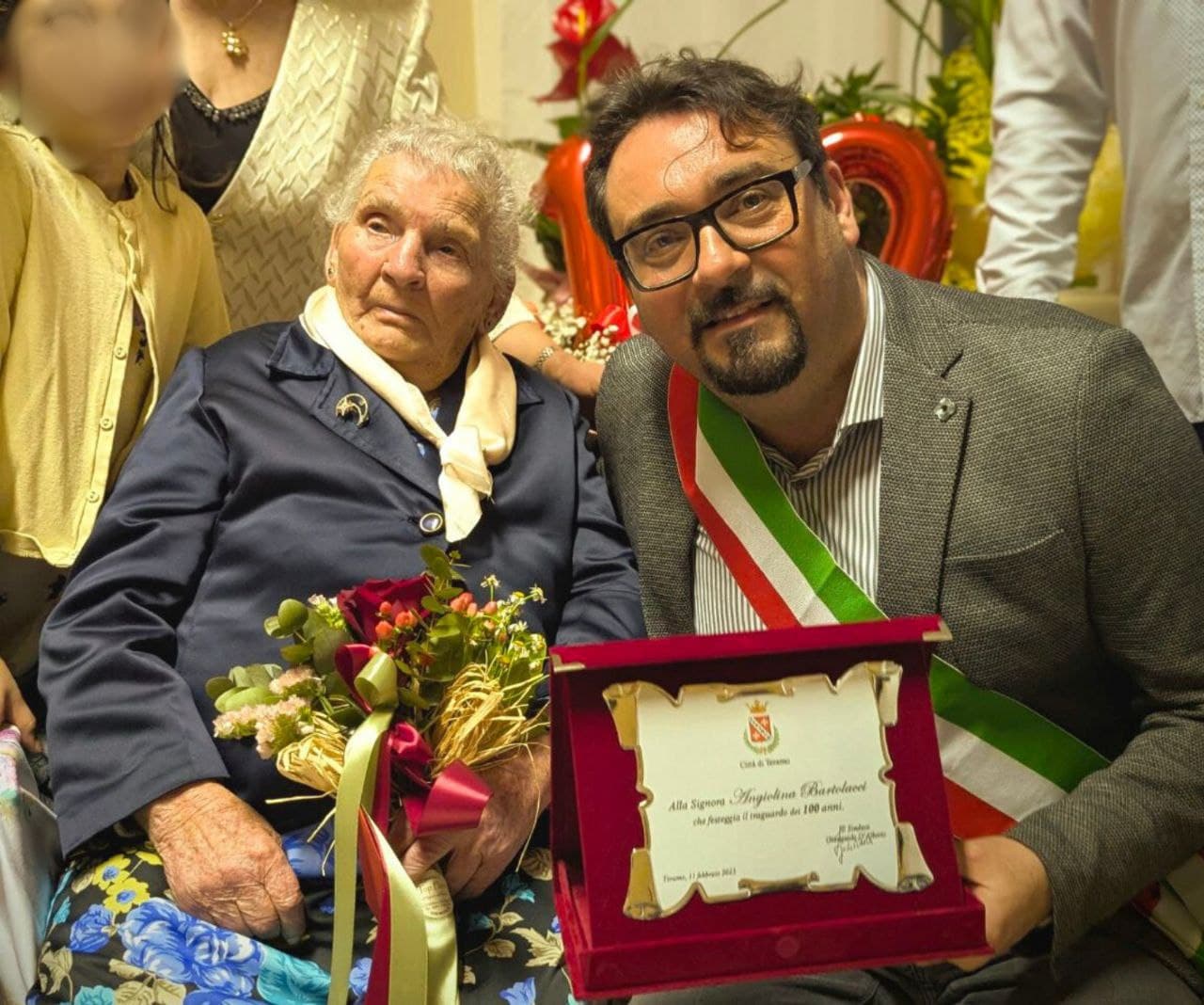 Per l’occasione, il primo cittadino le ha consegnato una targa a nome dell’Amministrazione Comunale. Molto legata alle tradizioni, come tutta la famiglia, la signora Angiolina ha dedicato la sua vita, insieme al marito Silvio Falconi, al lavoro nei campi e alla cura della famiglia. Madre di quattro figli, Anna Maria, Paolo, Adelaide e Gabriella, è nonna di 9 nipoti e di 12 pronipoti. Circondata dall’affetto di familiari ed amici, ieri ha festeggiato l’importante traguardo ricevendo il saluto dell’intera città di Teramo da parte del primo cittadino.