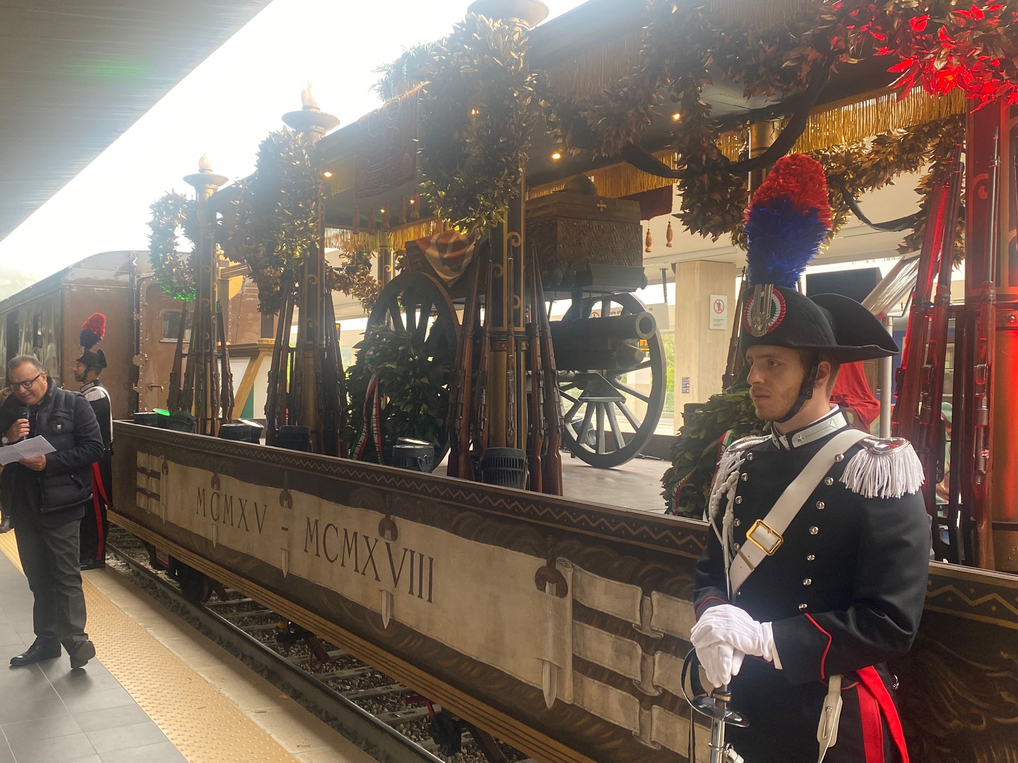 Era il 28 ottobre del 1921 quando la madre di Antonio Bergamas scelse una salma tra le undici che rappresentavano i diversi fronti su cui l’Italia aveva combattuto il primo conflitto mondiale. Nel 2021 l’Italia ha celebrato quel giorno e quel treno partito da Aquileia, in movimento lungo una linea ferroviaria che toccò Venezia, Bologna, Firenze e Roma. Un treno che a velocità moderatissima passava di stazione in stazione dando l’opportunità alla popolazione di onorare il caduto simbolo. Quest’anno, nell’ambito delle attività legate alle commemorazioni del Centenario della traslazione del Milite Ignoto, il Treno della Memoria torna ad attraversare l’intera penisola, con un percorso di oltre 5mila chilometri attraverso tutti i capoluoghi di regione e le maggiori città italiane non coinvolte nel percorso del 1921 e toccate lo scorso anno in occasione delle celebrazioni per il centenario del Milite Ignoto. Un progetto promosso dallo Stato Maggiore della Difesa in collaborazione con il Gruppo Ferrovie dello Stato Italiane.