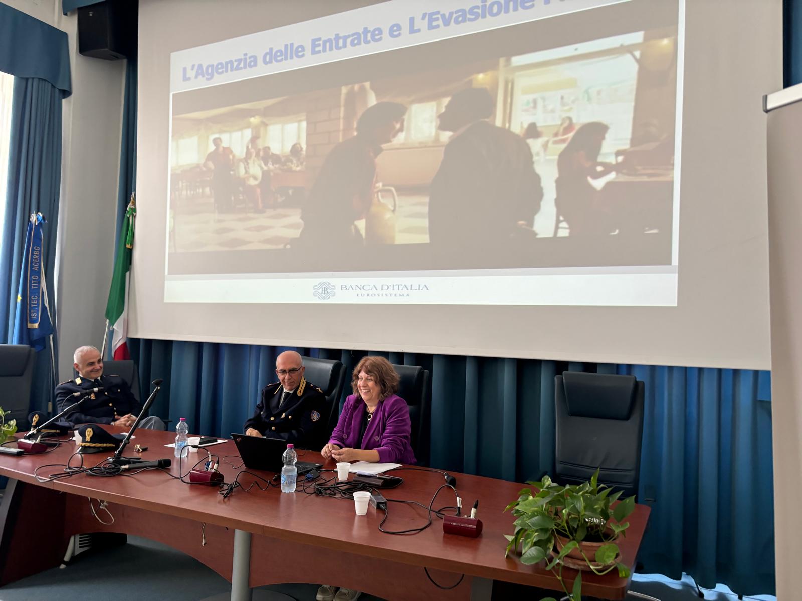 Il Tavolo della Legalità in materia Economico-Finanziaria, costituito nel 2023, è finalizzato a sensibilizzare gli studenti delle scuole secondarie abruzzesi di secondo grado sull’importanza del rispetto delle norme e su temi quali corruzione, concussione, riciclaggio di denaro di provenienza illecita, cyber risk, truffe online, usura, contraffazione ed evasione fiscale.
