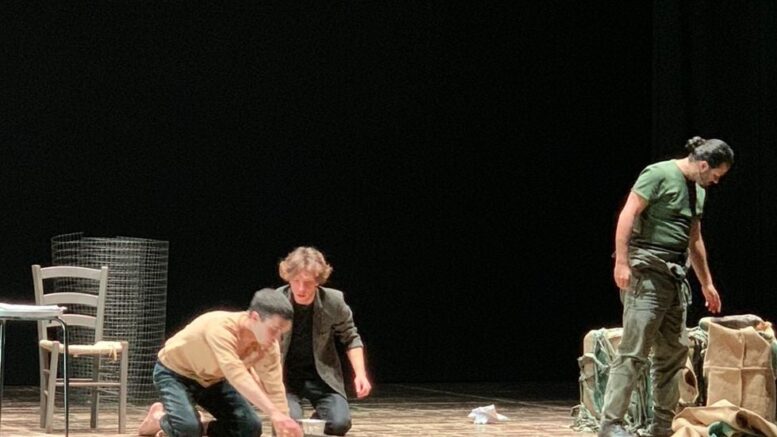 Testo e regia Federica Vicino, scenografia e videoinstallazioni Emanuele Dragone, assistente alla regia Jamal Mouawad, musiche originali Angelo Valori, con Andrea Fuorto, Marco Paparella, Lorenzo Valori, Riccardo Falasca. Una produzione del TSA in collaborazione con New Sounds and beyond e Officine Solidali Teatro.