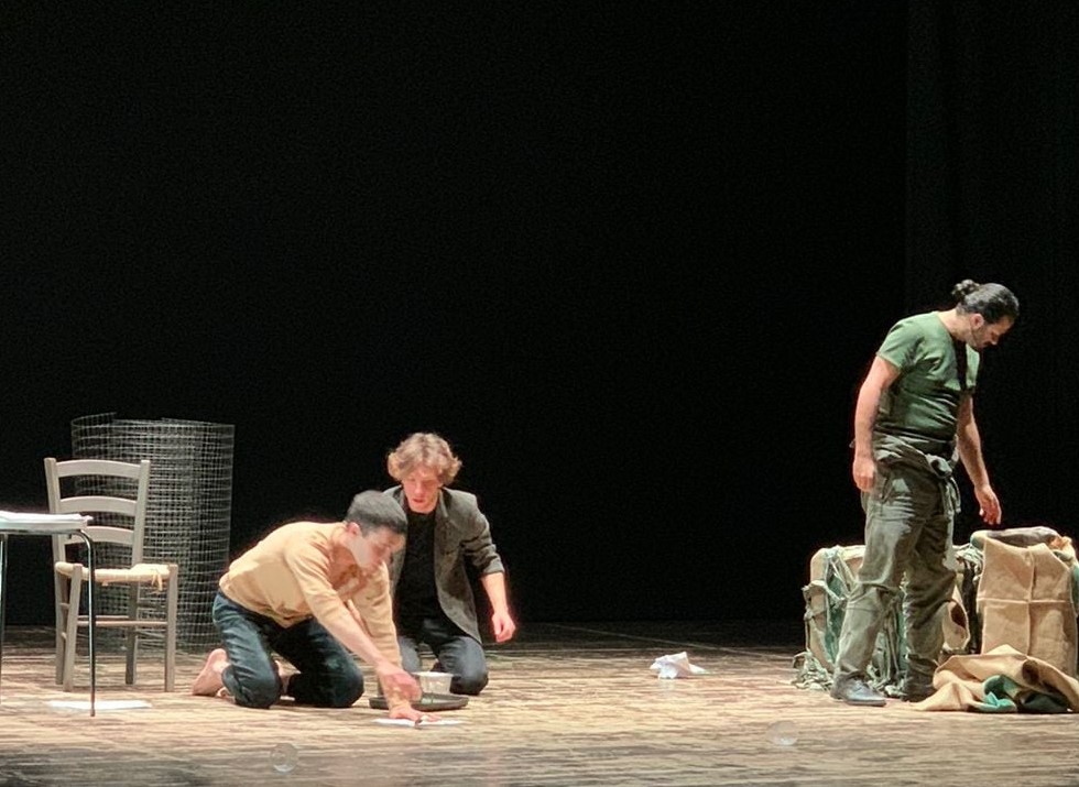 Testo e regia Federica Vicino, scenografia e videoinstallazioni Emanuele Dragone, assistente alla regia Jamal Mouawad, musiche originali Angelo Valori, con Andrea Fuorto, Marco Paparella, Lorenzo Valori, Riccardo Falasca. Una produzione del TSA in collaborazione con New Sounds and beyond e Officine Solidali Teatro.