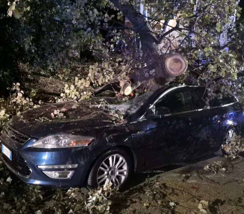 Particolarmente flagellato il capoluogo teramano dove si è verificata la caduta di alberi e rami. I vigili del fuoco sono intervenuti a Teramo in viale Bovio e via San Marino per rimuovere alberi caduti sulle strade comunali. Intorno alle tre di notte in via San Marino è caduto un platano che ha danneggiato una Ford Mondeo in sosta, con il pesante tronco che si è abbattuto sul tettuccio dell’auto penetrando all’interno dell’abitacolo.
