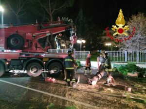 Fortunatamente in quel momento non transitavano auto o persone e pertanto non ha provocato danni di alcun genere. I vigili del fuoco, giunti immediatamente sul posto, hanno lavorato a lungo per rimuovere il grosso albero, impiegando un’autogru ed utilizzando una motosega per sezionarlo in varie parti che sono state poi sistemate nell’area a ridosso della recinzione della casa di riposo. Sul posto è intervenuta anche una pattuglia della Polizia Stradale di Teramo, per regolare il transito delle auto e il personale del Reparto manutentivo del Comune di Teramo per lo spazzamento dell’area interessata.