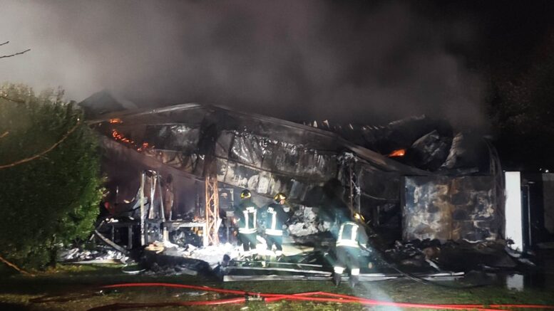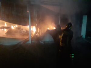 Complessivamente sono stati impiegati dieci uomini con un’autopompa e tre autobotti. Le fiamme si sono diffuse rapidamente, distruggendo l’intero capannone realizzato con pannelli metallici di tipo sandwich. L’intervento dei vigili del fuoco ha evitato che le fiamme potessero estendersi al vicino fabbricato di civile abitazione. Le operazioni di soccorso sono state ultimate con lo smassamento del materiale parzialmente bruciato.