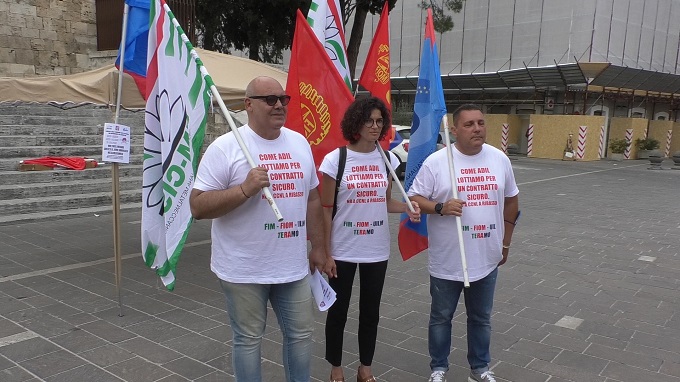 Le segreterie provinciali di Fiom Cgil, Fim Cisl e Uilm Uil sono scese in piazza, a Teramo, per denunciare la diffusione sul territorio della provincia, anche nel settore metalmeccanico, dei cosiddetti “contratti gialli”, ossia quei contratti non sottoscritti dalle organizzazioni sindacali maggiormente rappresentative né tantomeno dalle associazioni datoriali e che, di fatto, si traducono in meno diritti e tutela per i lavoratori.