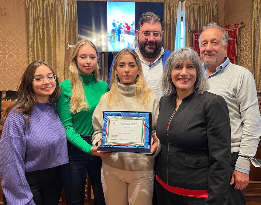 Il vicepresidente con delega ai servizi antiviolenza, Luca Frangioni, questa mattina nella sala consiliare della Provincia ha consegnato agli studenti del Liceo Artistico “Montauti” di Teramo una targa di ringraziamento per la loro partecipazione al progetto “Donne e Rinascita 2”.