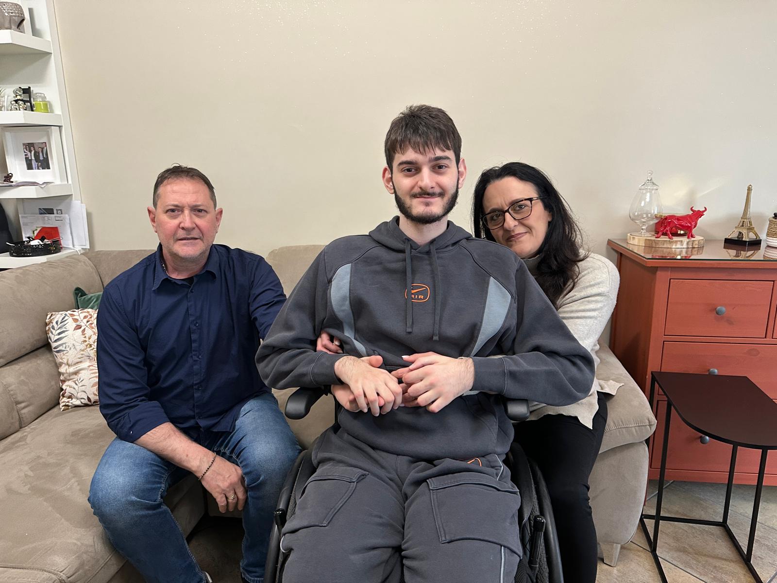 La caduta gli ha provocato lesioni gravissime: rottura delle vertebre cervicali C5-C6 e lunghi giorni in rianimazione. Quando si è risvegliato dal coma, la diagnosi era irreversibile: tetraplegia. Da allora ogni gesto, anche il più semplice, richiede assistenza. Bere un bicchiere d’acqua, muovere le mani, cambiare posizione: azioni un tempo automatiche oggi sono conquiste difficili. La sua famiglia gli è accanto senza sosta, riorganizzando lavoro e quotidianità per garantirgli presenza continua e sostegno emotivo.