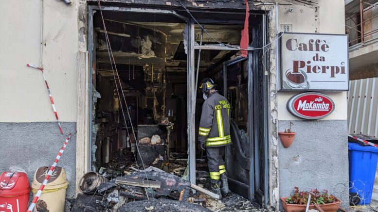 Stamattina, alle 6:00 circa, una squadra dei vigili del fuoco del Comando di Teramo, con un’autopompa, un’autobotte e un pickup con modulo antincendio, è intervenuta presso un bar in via Cona a Teramo, a seguito di un incendio. Il titolare del bar ha notato del fumo all’interno del bar quando stamattina ha aperto la porta del locale. L’afflusso di aria ha alimentato la combustione con le fiamme che rapidamente hanno avvolto gli arredi e il materiale combustibile presente nell’ambiente. I vigili del fuoco hanno raggiunto velocemente il luogo dell’incendio che si trova a breve distanza dalla sede del Comando e hanno prontamente provveduto a spegnere le fiamme attive. Il calore sviluppato dall’incendio ha provocato la caduta del controsoffitto e il danneggiamento degli impianti, oltre ad un leggero annerimento della parete condominiale. Sul posto sono intervenute anche due pattuglie della Polizia di Stato per gli adempimenti di competenza