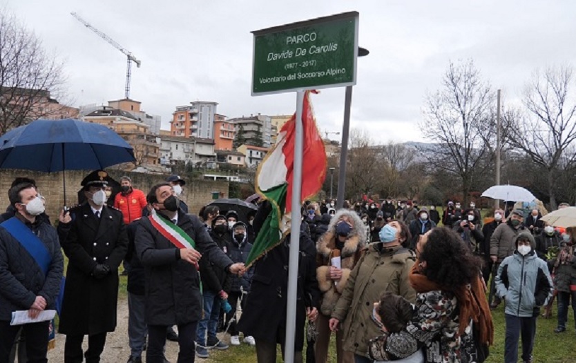 Il comune di Teramo, su richiesta del Movimento Adulti Scout Cattolici Italiani d’Abruzzo, ha intitolato il parco lungo il fiume Vezzola a Davide De Carolis, il volontario tecnico dell’elisoccorso scomparso cinque anni fa nella tragedia di Campo Felice.