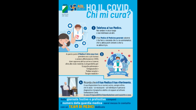 Avviata dalla Asl di Teramo una campagna di comunicazione per informare i cittadini sulle corrette procedure inerenti l’assistenza a domicilio dei positivi al Covid. Negli ambulatori dei medici di medicina generale e dei pediatri di libera scelta, nelle farmacie e nei distretti di base e poliambulatori della Asl, dall’inizio di agosto sono stati affissi dei manifesti che danno indicazioni chiare al paziente su che fare in caso si scopra positivo