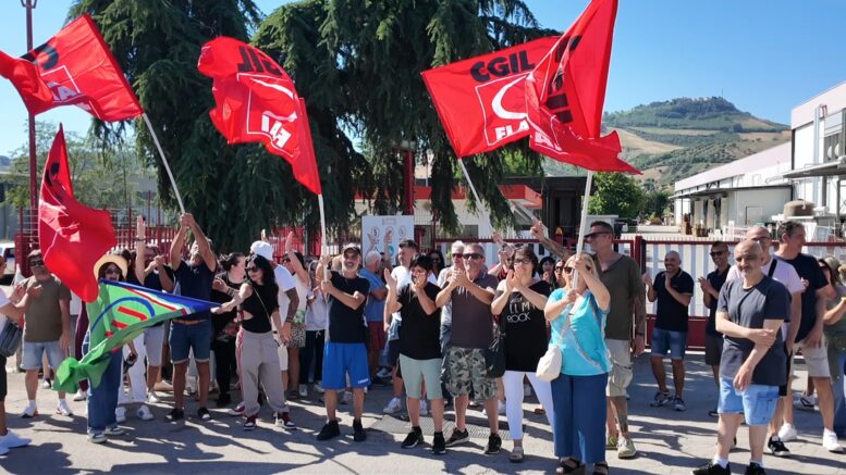 Otto ore di sciopero e presidio dei lavoratori davanti alla fabbrica Richetti nella frazione teramana di Sant’Atto per dire no all’imposizione del sabato lavorativo durante l’estate