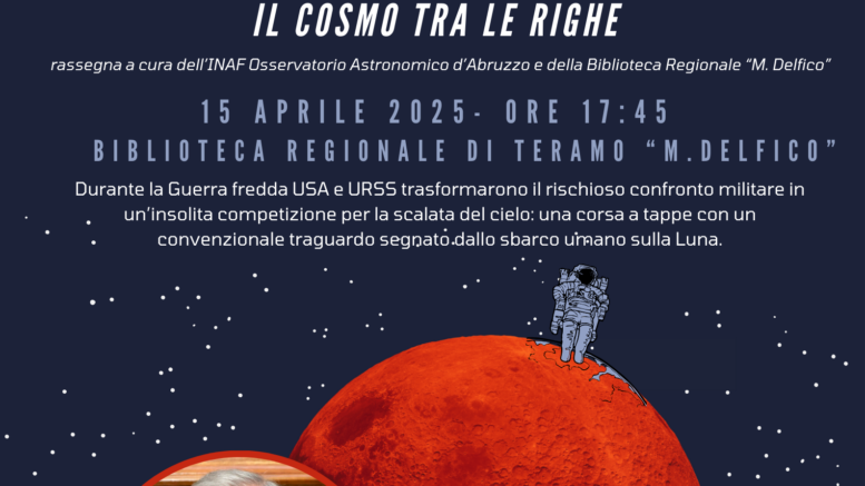 Si prosegue martedì 15 aprile alle ore 17:45 nel chiostro della Biblioteca regionale (via Delfico 16), dove Capaccioli presenterà il libro “Luna rossa: la conquista sovietica dello spazio” (edizioni Carocci). Verranno ripercorse le tappe della corsa allo spazio tra Stati Uniti e Unione Sovietica durante la Guerra Fredda. Un racconto tra scienza, politica e avventura che culminerà con il primo sbarco umano sulla Luna. L’evento è aperto al pubblico, ingresso libero fino a esaurimento posti.
