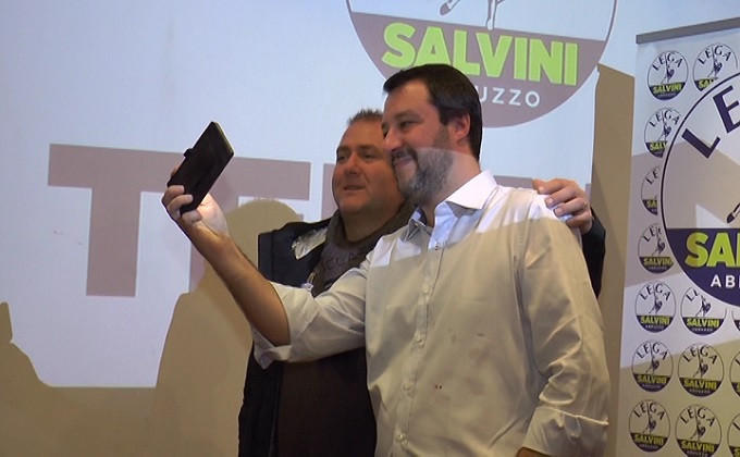 Oltre alla sala Polifunzionale piena di giornalisti e pubblico, almeno altre trecento persone hanno aspettato il leader della Lega all’esterno. Il vicepremier, a Teramo per la campagna elettorale del centrodestra, ha affrontato i temi di attualità della politica nazionale, ma anche problemi locali come la ricostruzione post sisma, un argomento molto sentito in città visto che sono ancora oltre 4000 gli sfollati teramani. Una cinquantina di simpatizzanti di Potere al popolo e di Teramo Antifascista ha contestato il ministro dell’Interno, Matteo Salvini, in visita a Teramo nella due giorni abruzzese per sostenere i candidati della Lega alle elezioni regionali. Al canto di ‘Bella ciao’ e urlando slogan del tipo ‘Lega Salvini e lascialo legato’, ‘Siamo tutti antifascisti’, il gruppetto ha tentato di avvicinarsi al corteo di auto del vicepremier in visita privata al vescovo di Teramo dopo aver incontrato i cittadini. I manifestanti sono stati tenuti a distanza nella centrale piazza Martiri, dove anche oggi si sta svolgendo il mercato, da un nutrito plotone di agenti della Polizia di stato del reparto celere. Il ministro, che è stato costretto a modificare il programma della visita, saltando la passeggiata lungo il mercato ambulante perché trattenuto dalla folla che ha voluto scattare selfie, è stato circa mezzora dal vescovo Lorenzo Leuzzi prima di ripartire per Roseto dove alle 15 è previsto l’incontro con i balneatori e gli imprenditori marittimi. L’Abruzzo chiederà il referendum per l’autonomia ”perché spendere i soldi vicino a dove vengono pagati garantisce meno sprechi, meno furti e più efficienza”. Così il ministro dell’Interno il quale ha ribadito quello che in apertura dell’incontro era stato annunciato da altri esponenti dello stesso partito, e cioè la proposta di un referendum popolare per l’autonomia della Regione Abruzzo, per la gestione di particolari materie per il momento di competenza dello Stato, sull’esempio di Lombardia e Veneto che già la applicano: ”L’autonomia dei territori, dei sindaci e dei Governatori – ha detto Salvini sull’argomento – farà bene da nord a sud, lo dimostra tutto il resto del mondo”.