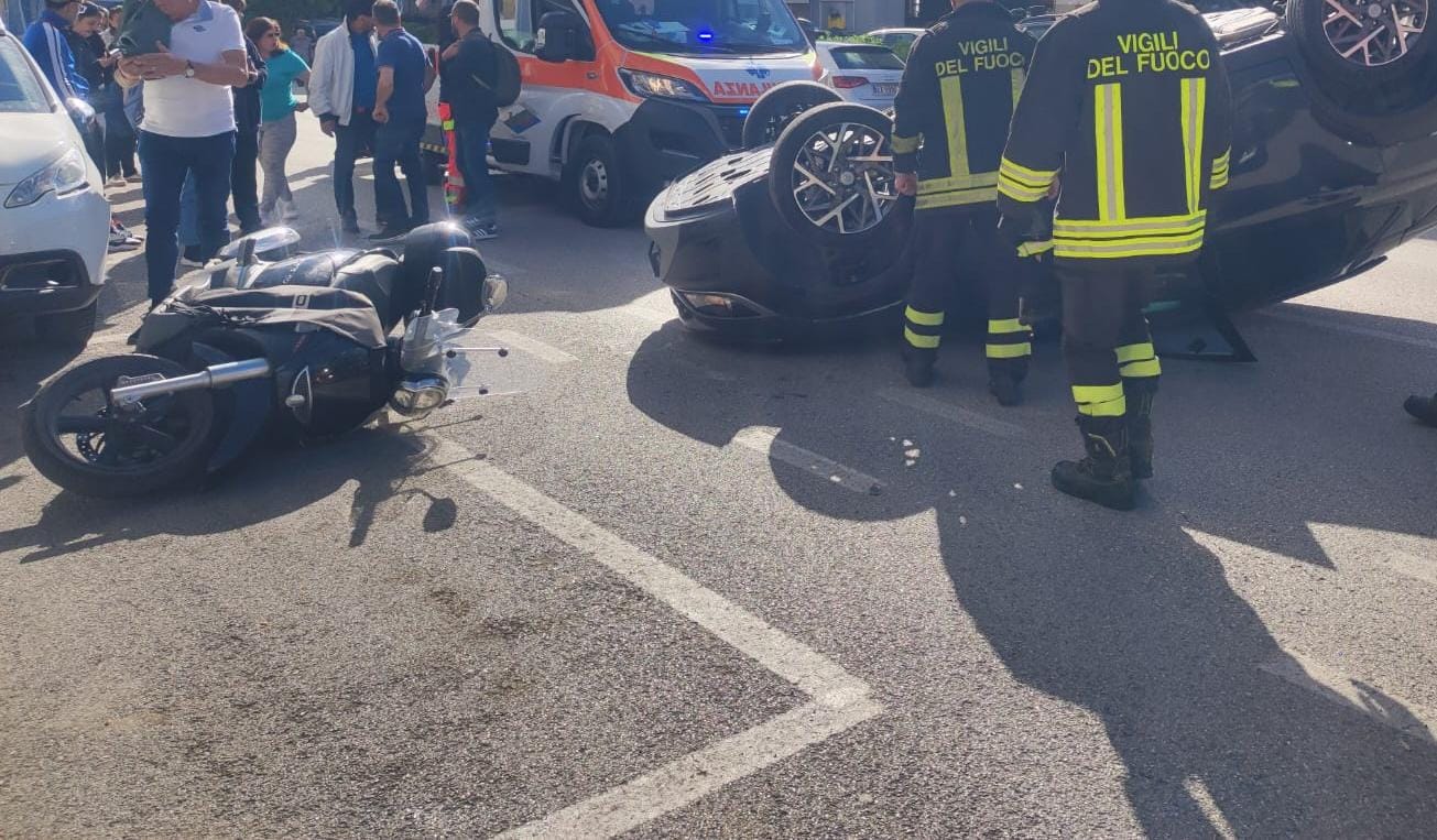 Stamattina, intorno alle 8:30, una squadra dei vigili del fuoco di Teramo è intervenuta in viale Crispi, davanti al distributore Eni, a seguito di un incidente stradale. Da una prima ricostruzione dell’incidente, sembrerebbe che la ragazza alla guida di una Hyundai Kona con targa tedesca ha perso il controllo del mezzo che ha impattato contro un’auto in sosta e uno scooter. A seguito del violento urto, l’auto si è ribaltata sul tettuccio. I vigili del fuoco hanno collaborato con il personale sanitario e hanno messo in sicurezza i mezzi incidentati. L’auto è stata recuperata da un carro attrezzi dopo che è stata rimessa sulle quattro ruote con l’impiego dell’autogrù del Comando dei vigili del fuoco di Teramo. Sul posto sono intervenuti anche i Carabinieri di Teramo e una pattuglia della Polizia Locale per regolare il traffico ed effettuare i rilievi dell’incidente. La strada è rimasta bloccata al traffico per tutta la durata dell’intervento.