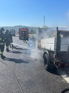 Nella tarda mattinata di oggi due squadre dei vigili del fuoco dei Distaccamenti di San Benedetto del Tronto e Nereto sono intervenute sulla carreggiata sud dell’Autostrada A14, in prossimità dell’uscita Val Vibrata, a seguito dell’incendio di un furgone cassonato adibito al trasporto di materiali ed attrezzature edili