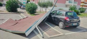 Così in via Cellini a Tortoreto: una tettoia volata giù e finita su un’auto in sosta