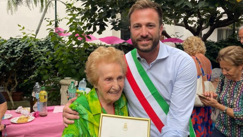 La signora Elvira Marinucci, di Giulianova, ha compiuto 100 anni il 26 giugno e li ha festeggiati ieri, stretta dall’affetto dei familiari, dei tanti amici e dei vicini di casa. La sua casa, in piazza Marà, un luogo che in serata è stato animato da una bella festa estiva e che, durante la settimana, da sempre, è spazio di serena attività quotidiana, di operosità e di incontro. Nell’occasione il sindaco Jwan Costantini le ha fatto visita per salutarla, farle gli auguri e regalarle una pergamena che testimonia della stima e della simpatia dell’amministrazione comunale e della città.