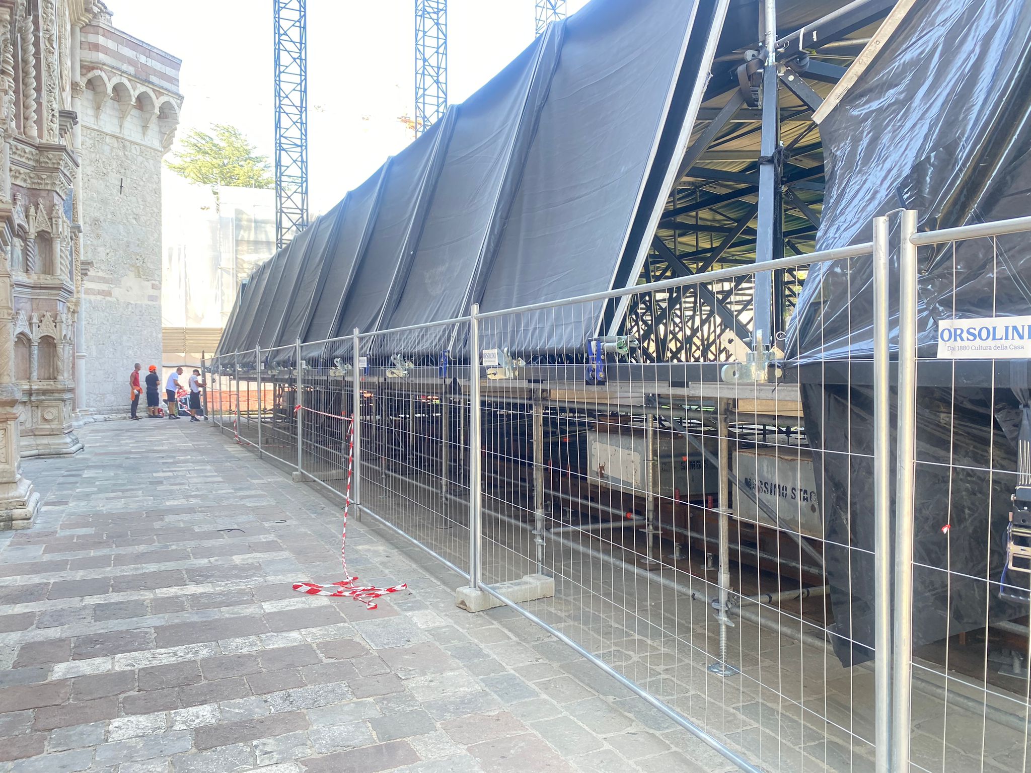 Fatto sta che il palco così vicino all’ingresso della porta della basilica di Collemaggio oltre a coprire ancora di più la facciata, a rendere nulli i giochi di luce del rosone dentro e a far sorgere qualche perplessità sulla sicurezza, ha fatto infuriare un po’ tutti in città. I turisti per ammirare la bellezza devono alzare il collo, i muletti con gli operai impegnati nei lavori passano e ripassano. C’è chi dice è solo per una settimana, c’è chi chiama in causa la Soprintendenza e la curia. E quando ci saranno tanti Pellegrini ad attraversare la porta Santa come si farà a gestire quel poco spazio?