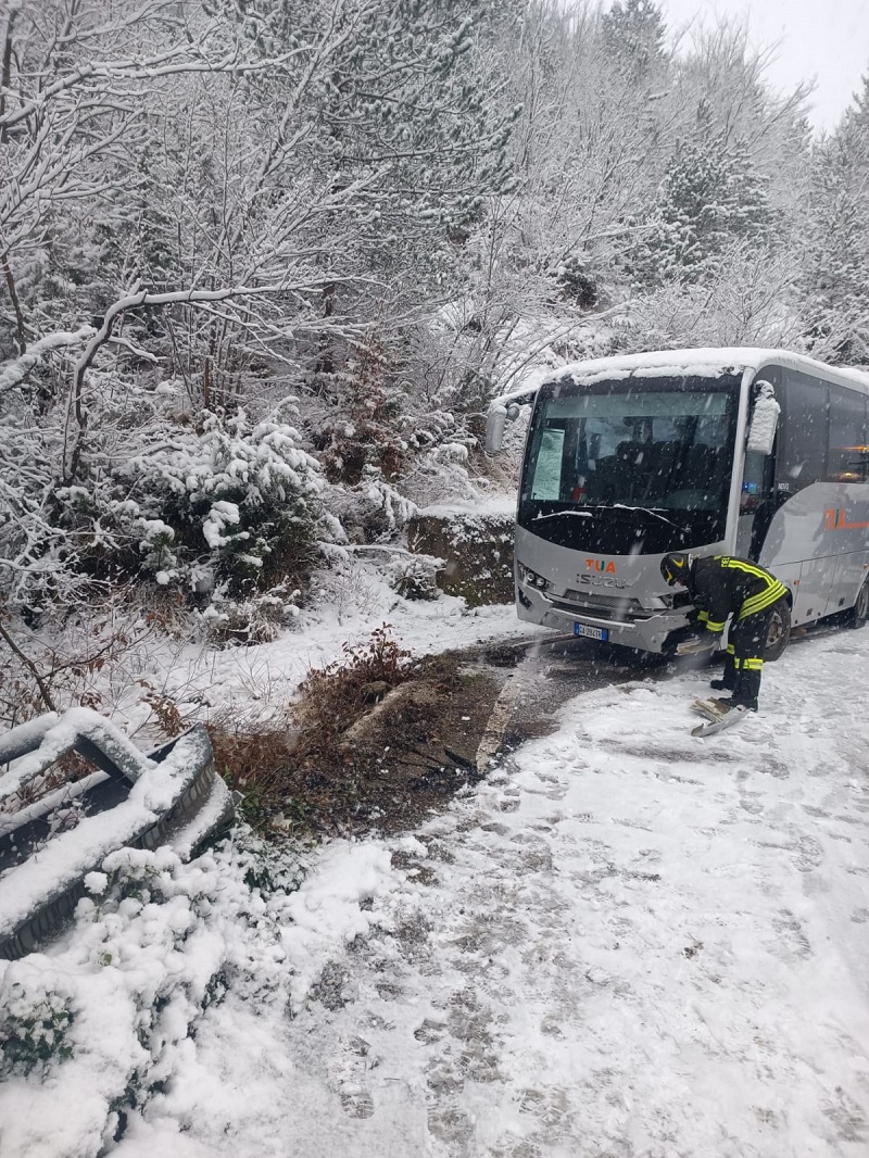 Nel primo pomeriggio una squadra del Distaccamento di Nereto è intervenuta sulla strada da Collebigliano di Civitella del Tronto verso San Giacomo per recuperare un’autovettura finita fuori strada a causa del fondo stradale reso scivoloso dalla neve.