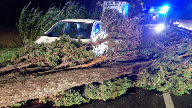 Stamattina presto i vigili del fuoco del Distaccamento di Roseto degli Abruzzi sono intervenuti nel comune di Silvi sulla SS16, a sud della Torre di Cerrano, per la caduta di un cipresso che si è abbattuto su una Opel Corsa con a bordo il solo conducente. L’uomo, un 48enne di Bussi sul Tirino, non ha riportato particolari conseguenze fisiche nell’incidente, ma è stato comunque soccorso dai volontari della Croce Rossa di Silvi Marina che hanno provveduto a trasportarlo in ambulanza presso l’ospedale di Atri. I vigili del fuoco hanno rimosso l’albero in modo da consentire la riapertura della strada statale al traffico veicolare. In serata i vigili del fuoco di Roseto degli Abruzzi hanno effettuato un intervento per lo spegnimento di una rimessa nel comune di Giulianova.