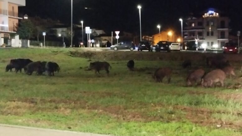 Sta facendo il giro dei social il video in cui si vede una vera e propria invasione di cinghiali di sera, in pieno centro, a passeggio tra rotatorie e auto