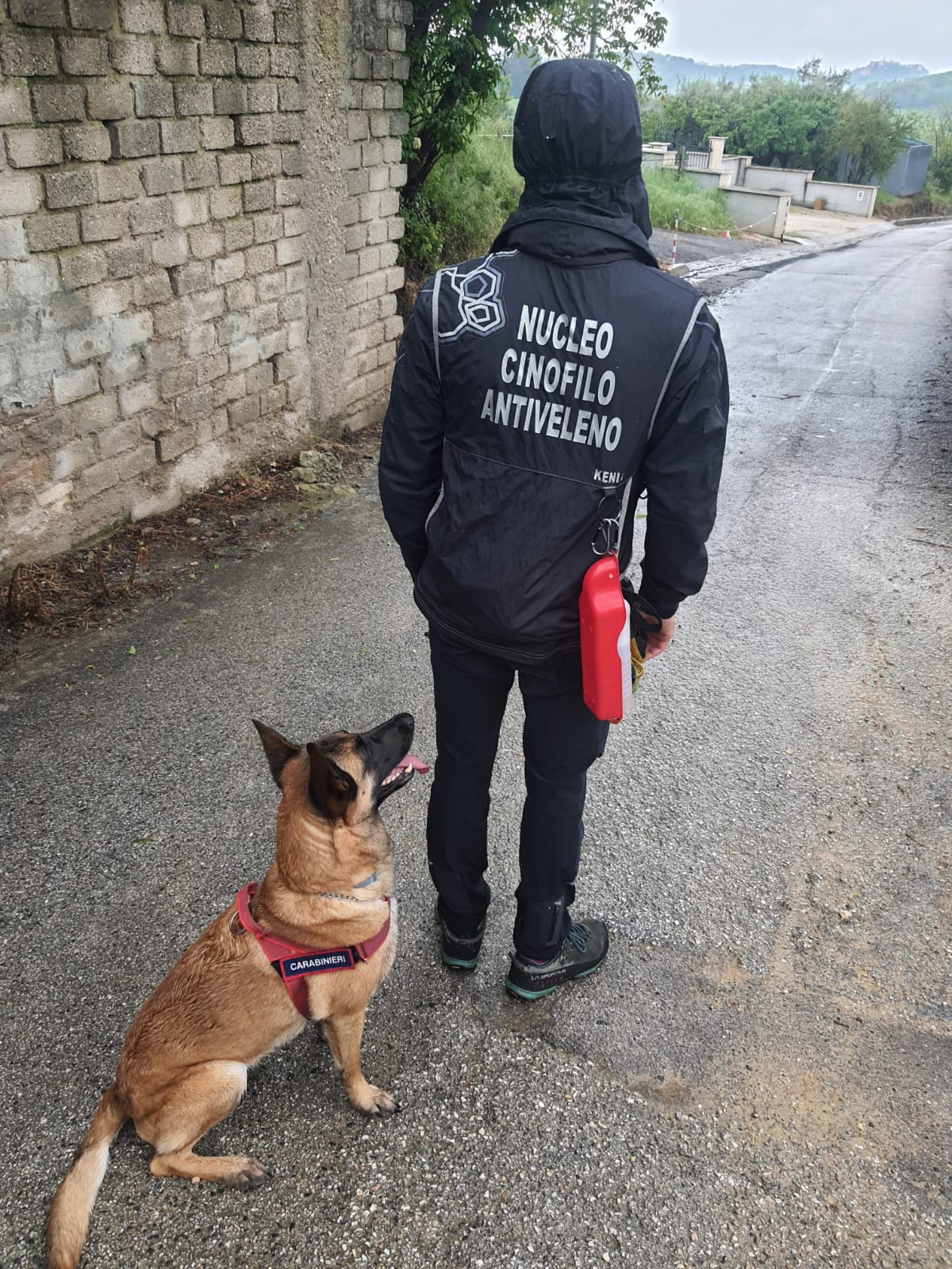 L’unità cinofila, composta dal Carabiniere della specialità Forestale e dal cane “Kenia”, pastore belga malinois di sette anni è stata impiegata nel territorio di Torricella Sicura e nella città di Teramo. Proprio a Torricella Sicura “Kenia” e il suo conduttore, hanno individuato due presunte esche, costituite da polpette di carne, che opportunamente repertate dai Carabinieri Forestali saranno analizzate dall’Istituto Zooprofilattico Sperimentale dell’Abruzzo e del Molise di Teramo al fine di acclararne la natura venefica. Il luogo ove sono state ritrovate tali verosimili esche è stato bonificato e qui sono in corso indagini dei Carabinieri della Stazione di Torricella al fine di individuare chi ha abbandonato tali sostanze.