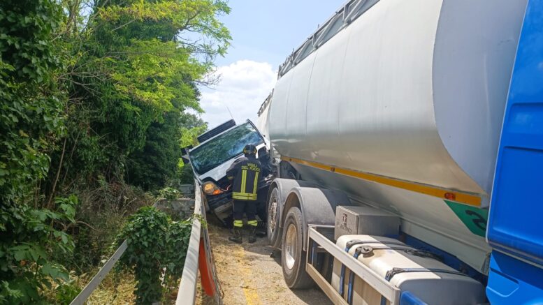 Per cause in corso di accertamento, da parte della Polizia Locale di Teramo e della Polizia Stradale di Pineto, il furgone, condotto da un 66enne barese, ha tamponato il mezzo pesante che percorreva la statale in direzione mare ed è rimasto schiacciato tra il camion e il guardrail. I vigili del fuoco hanno utilizzato l’autogrù per sollevare il furgone e spostare il rimorchio dell’autoarticolato che ha ripreso la marcia dirigendosi in una vicina officina, mentre il furgone è stato recuperato da un carroattrezzi. A causa dei traumi riportati, il conducente del furgone è stato trasportato presso l’ospedale di Teramo con un’ambulanza del 118. Il tratto della SS150 interessata dall’incidente è rimasto chiuso al traffico veicolare per tutta la durata delle operazioni di intervento.