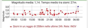 Fortunatamente non si sono registrati danni a cose e persone ma ad ogni scossa torna sempre il timore, soprattutto perché sono giorni che anche in altre parti d’Italia si registrano dei movimenti. Anche a Pizzoli sul sito dell’Ingv è possibile vedere come si siano registrati piccoli terremoti di magnitudo media 1,14 nelle ultime 24 ore.