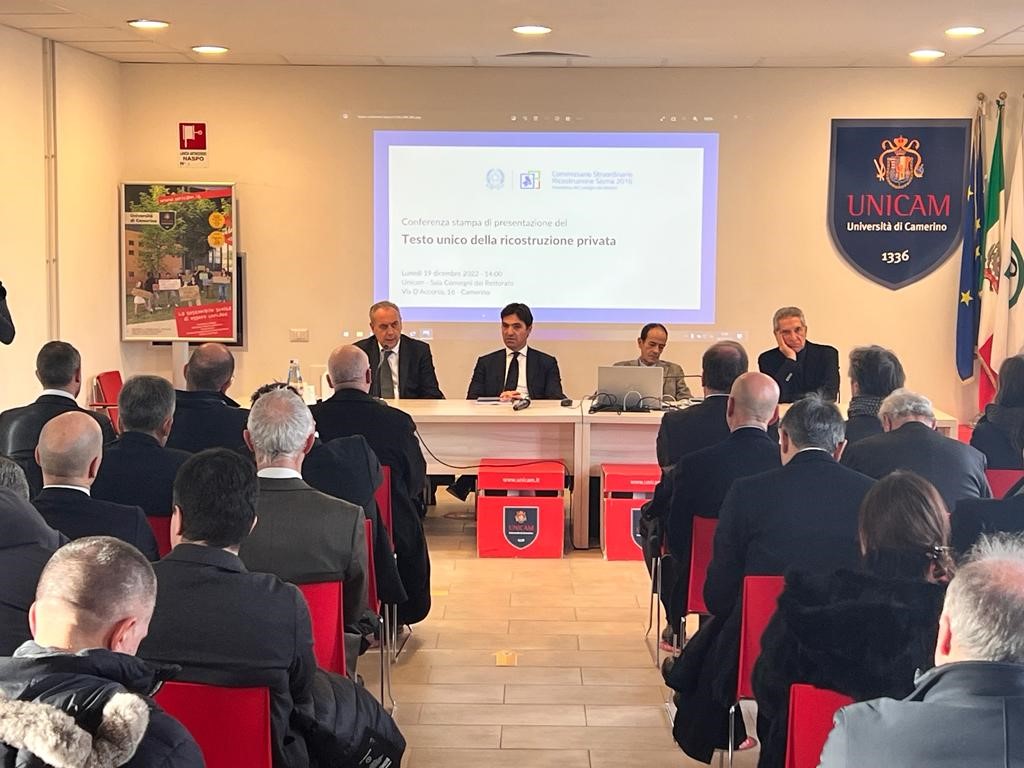 È stato presentato a Camerino il Testo unico della ricostruzione post terremoto che raccoglie, in 131 articoli e 15 allegati, oltre 550 disposizioni e 65 allegati contenuti in 61 ordinanze, che vengono contestualmente abrogate, ed è accompagnato da un’ampia relazione illustrativa per agevolarne la lettura