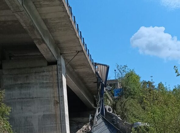 Secondo le prime ricostruzioni, il conducente avrebbe perso il controllo del camion andando a sbattere contro le barriere di sicurezza. Data la mole del tir, questo è riuscito a sfondare le protezioni del ponte ed è finito nel vuoto. Il camion risulta totalmente distrutto a causa del violento impatto al suolo. Gli altri veicoli che stavano transitando in quel momento sono riusciti a fermarsi appena prima di precipitare a loro volta.